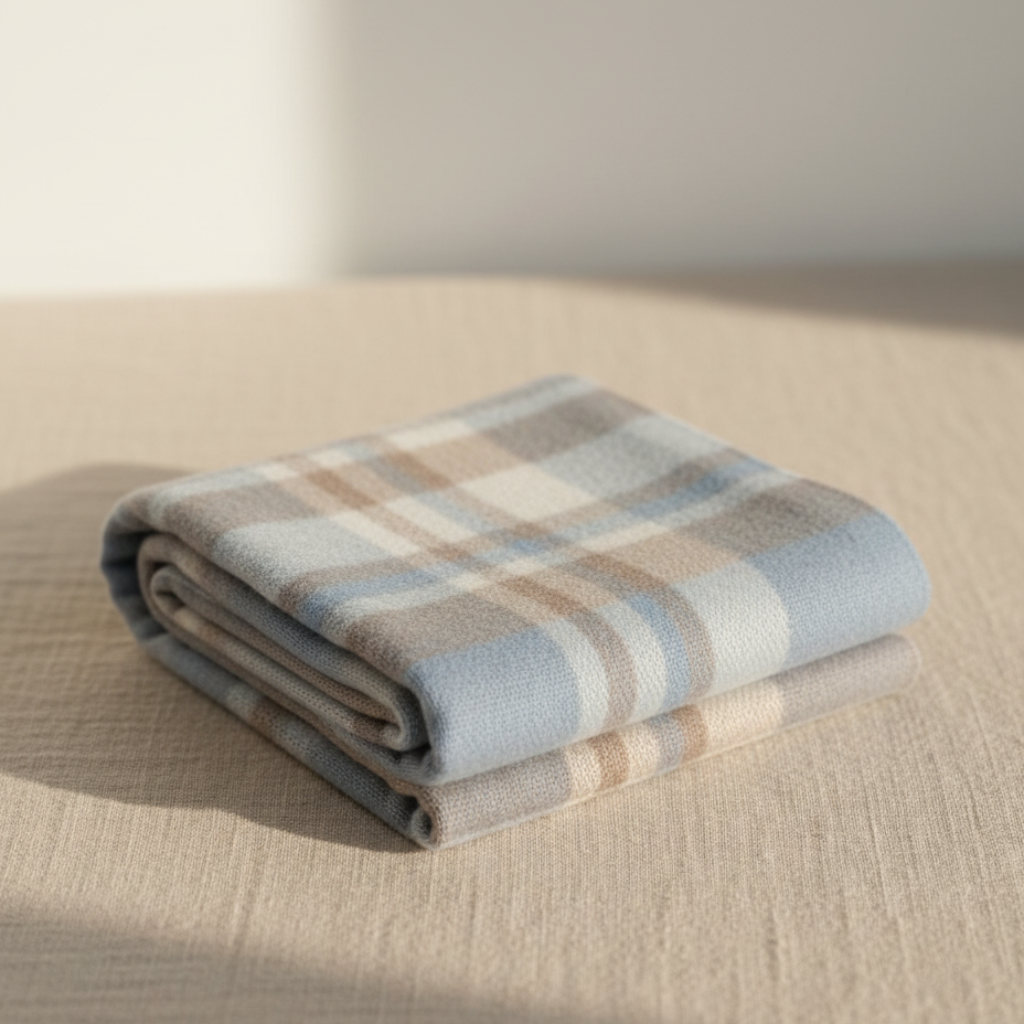 Soft blue and sand tones inspired by serene Nordic mornings.